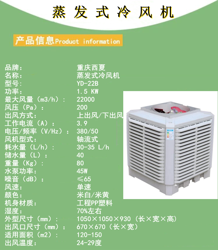 重慶西夏科技發(fā)展有限公司,開(kāi)發(fā)出一系列水冷蒸發(fā)式環(huán)保空調(diào)機(jī)、新型省電空調(diào)、冷風(fēng)機(jī)、大風(fēng)量移動(dòng)式冷風(fēng)機(jī)、濕簾墻、負(fù)壓風(fēng)機(jī)等;本機(jī)是利用歐洲瑞典CELDEK專(zhuān)利技術(shù),本產(chǎn)品具有降溫、通風(fēng)、換氣、防塵、除味、加濕等功能,它投資省、冷風(fēng)量大、節(jié)能環(huán)保是現(xiàn)代工廠(chǎng)、車(chē)間等最理想的通風(fēng)降溫?fù)Q氣設(shè)備,具有廣闊的市場(chǎng)前景,代表著空調(diào)通風(fēng)行業(yè)發(fā)展的新的方向!掃一掃,關(guān)注我們